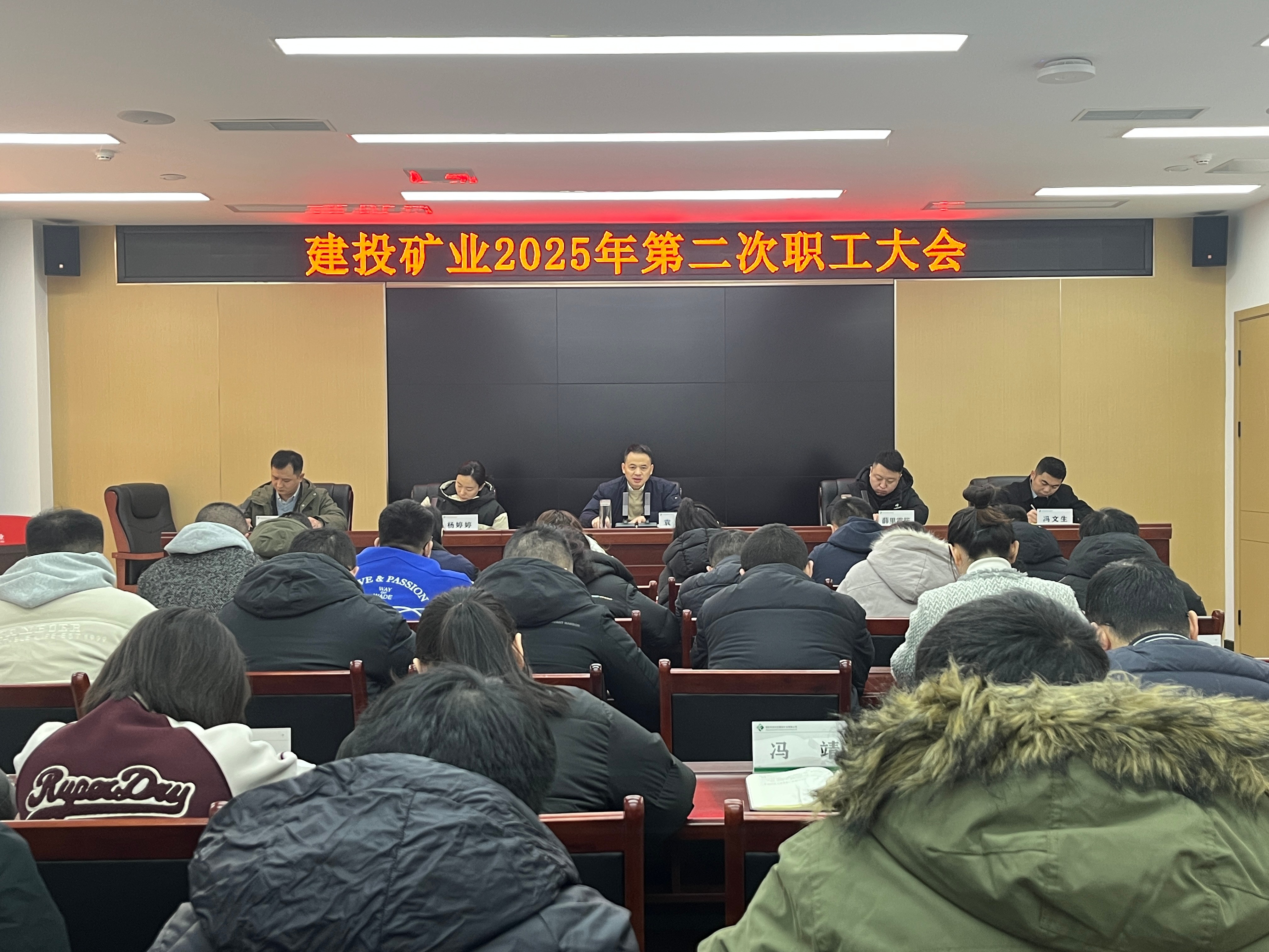 1月26日,建投礦業(yè)召開2025年第二次職工大會,傳達學習中央、省市區(qū)經(jīng)濟工作會的會議精神,以及二十屆中央紀委四次全會、省紀委十二屆四次全會、市紀委八屆五次全會、區(qū)紀委三屆五次全會的會議精神,部署貫徹落實措施。支部書記、董事長袁波出席會議并講話,副總經(jīng)理楊婷婷主持會議。