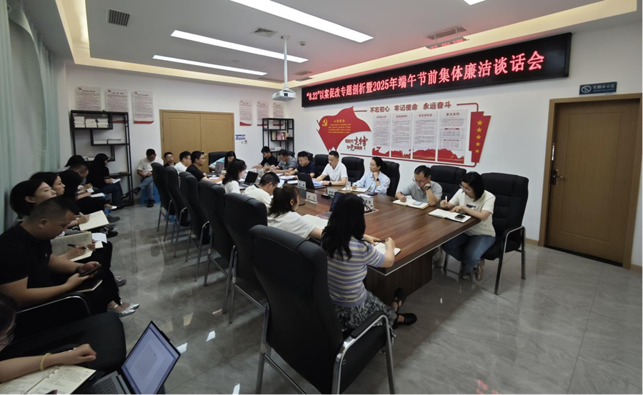 5月29日,公司召開“8.22”以案促改專題剖析暨端午節(jié)前集體廉潔談話會(huì)。公司黨部書記、董事長(zhǎng)袁波出席會(huì)議并講話。