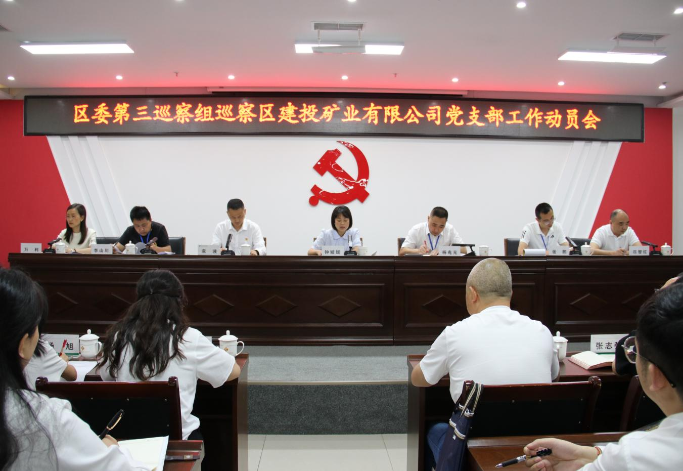 區(qū)委組織部、區(qū)紀委監(jiān)委駐財政局紀檢監(jiān)察組相關領導、區(qū)委第三巡察組相關人員、區(qū)建投礦業(yè)有限公司全體班子成員參加會議,區(qū)建投礦業(yè)有限公司全體干部職工列席會議。